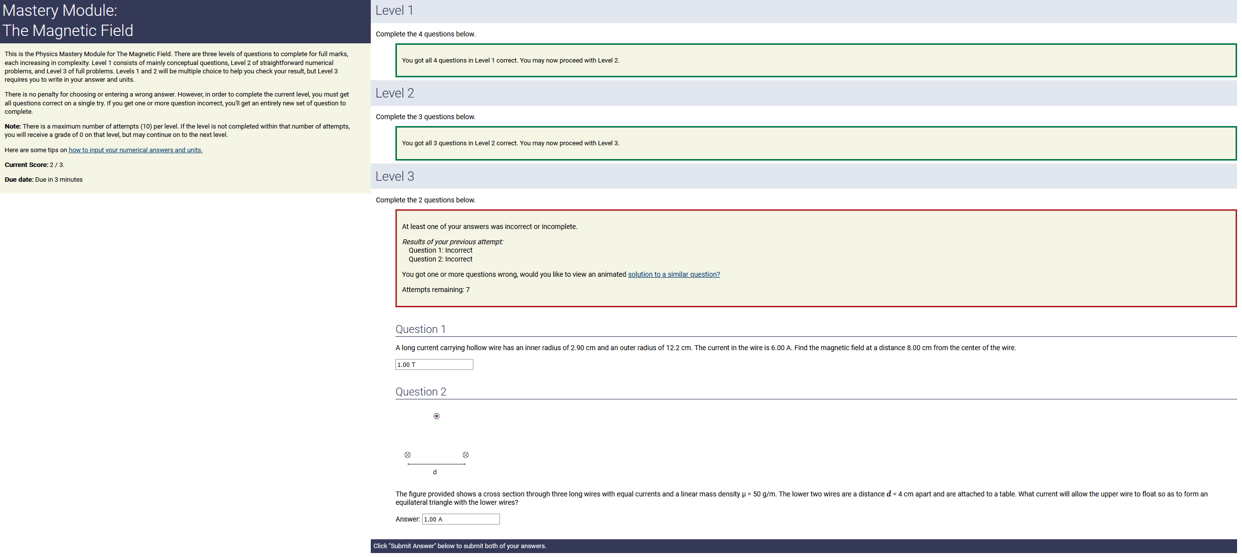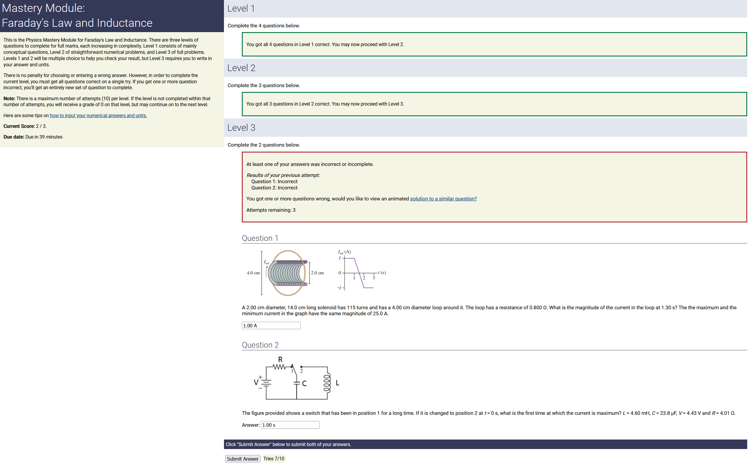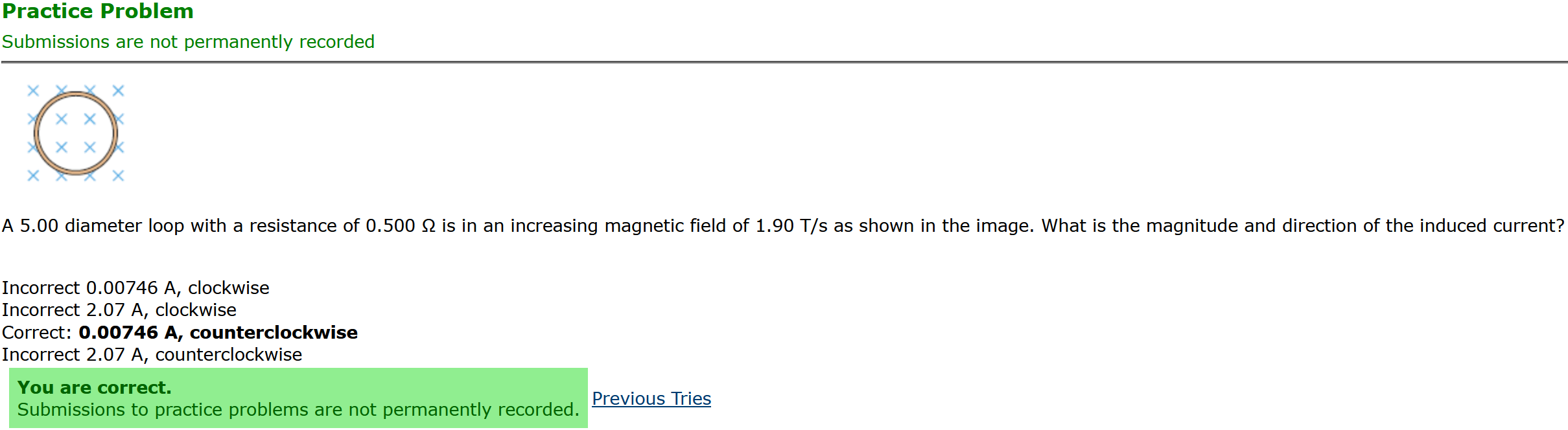 ANSWER: 0.00746 A, counterclockwise , the smaller number & counterclockwise