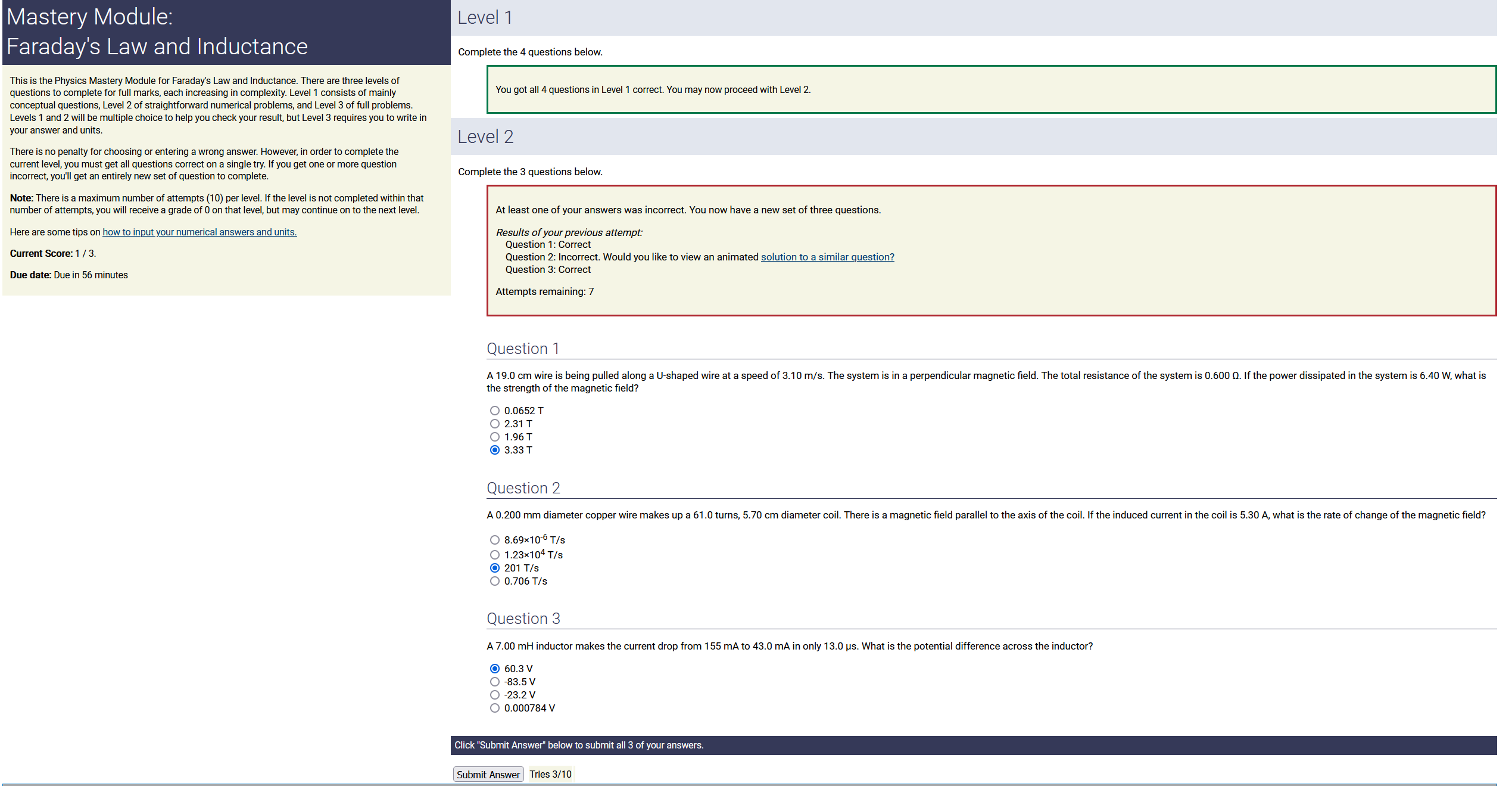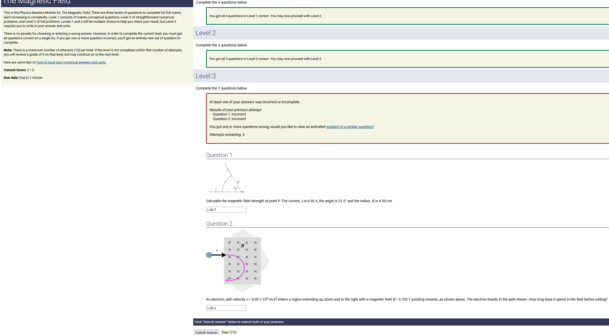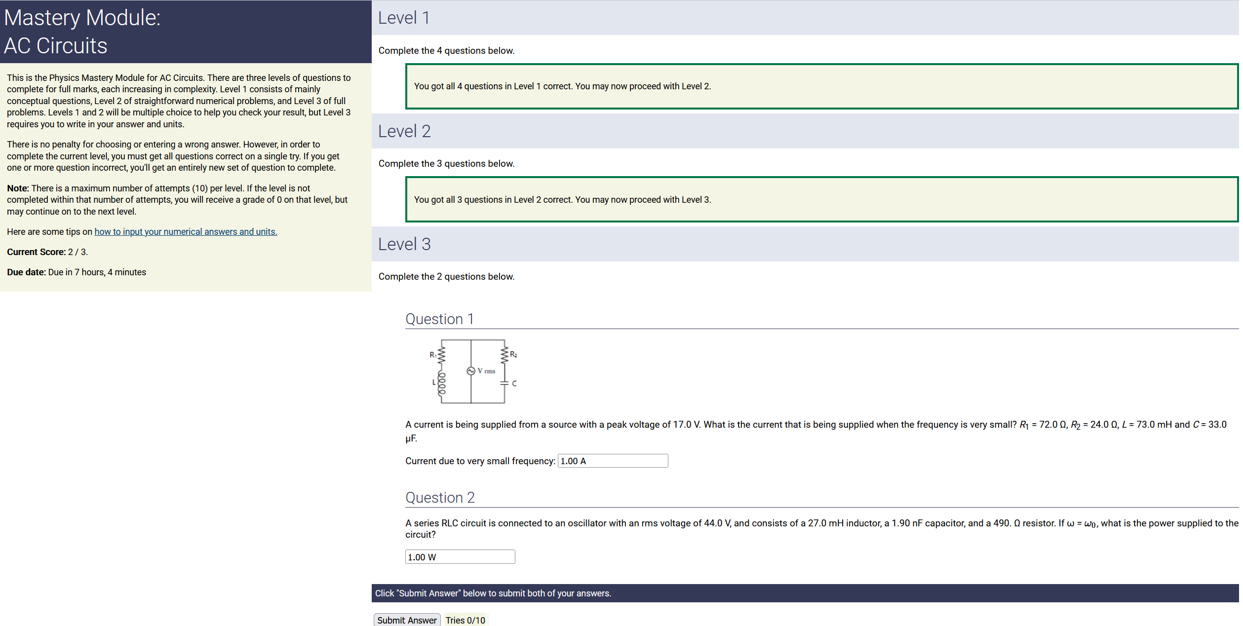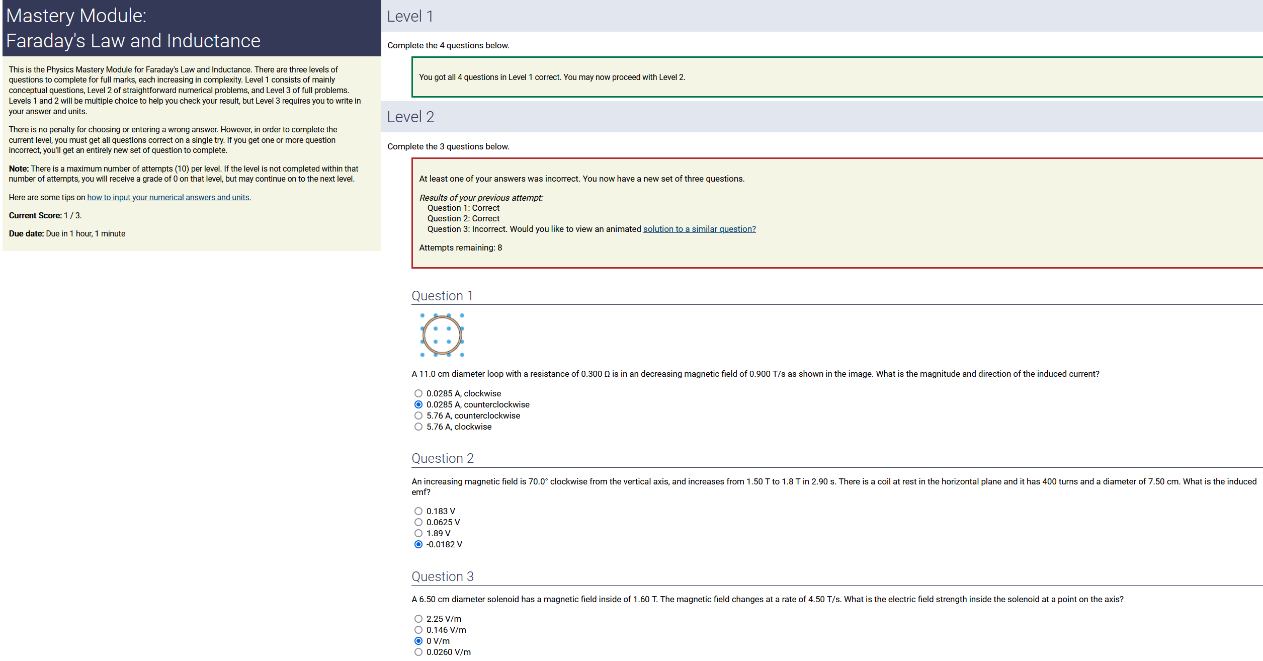 ANSWER: 0.00746 A, counterclockwise , the smaller number & counterclockwise