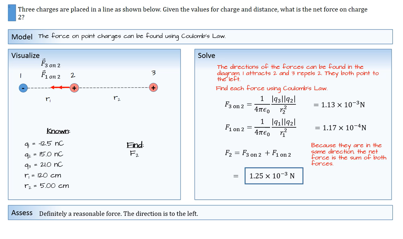 ANSWER: 0.00233 N to the right, the larger number & always to the right