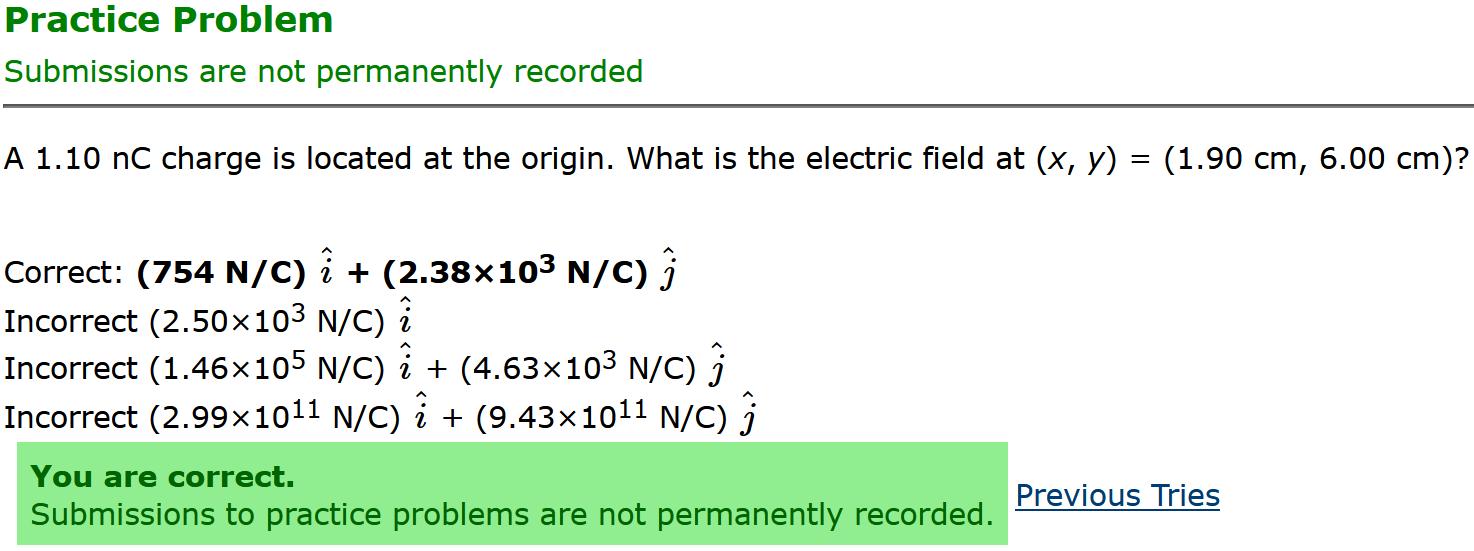 3.20 nC, 6.90 cm, 7.60 cm: 1.84e3 N/Ci, 2.02e3 N/Cj (smallest number) (wrong: 1.93e12i 2.13e12j, 3.04e3i 2.28e3j, 2.73e3i)